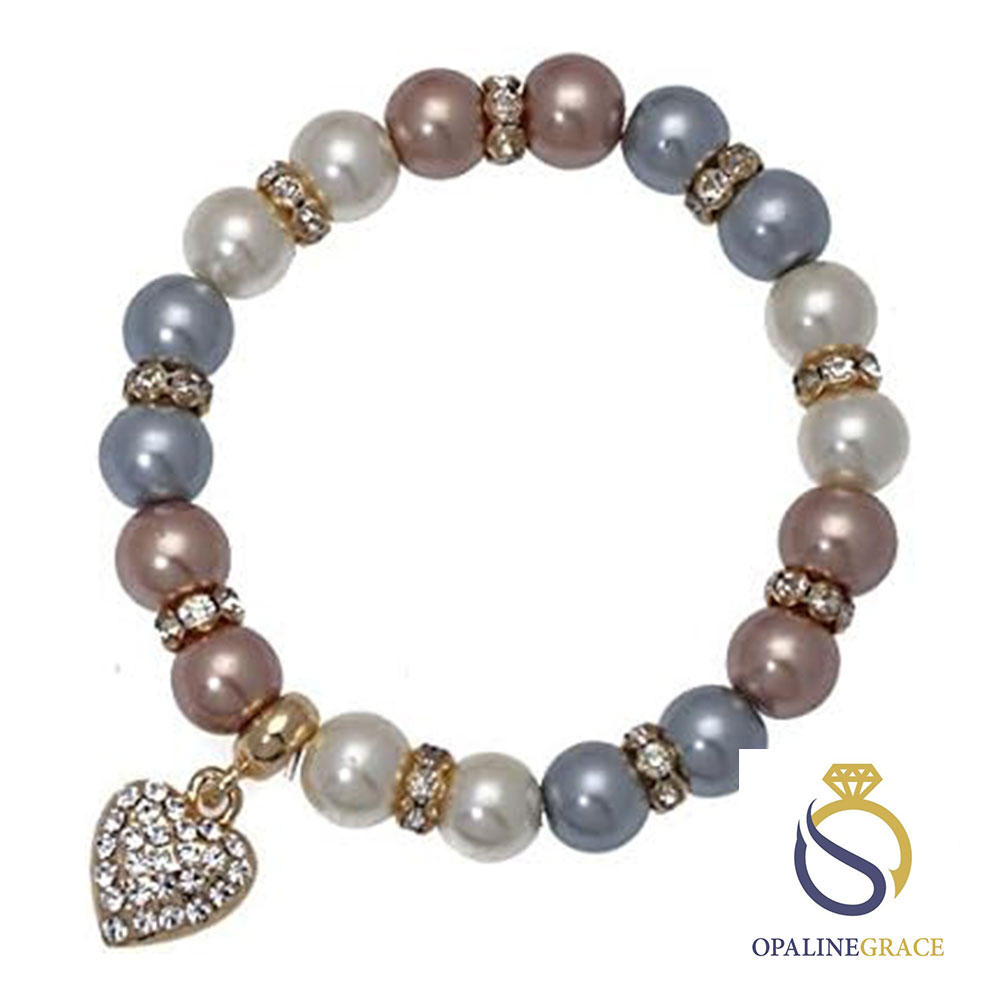 Add a soft, romantic touch to your accessory collection with our Gold-Tone Heart Charm Bracelet, featuring an elegant blend of cream, grey, and beige faux pearls. This dreamy color palette pairs beautifully with any outfit, while the delicate gold-tone heart charm brings a hint of warmth and charm.